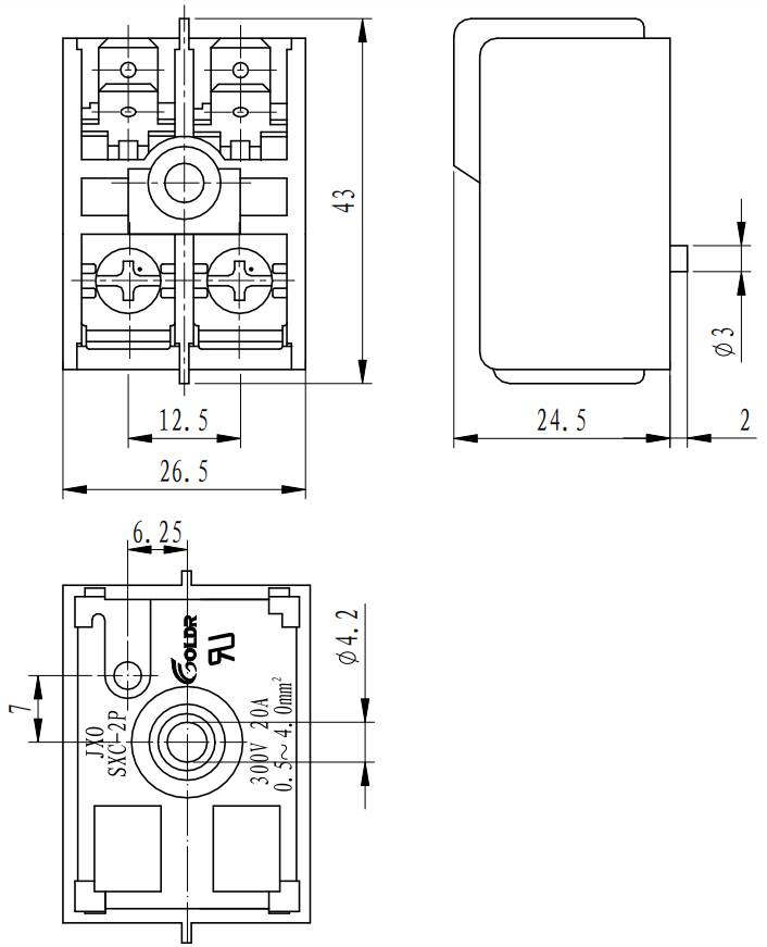 适用电线 Applicable wire 0.5-4.0mm2