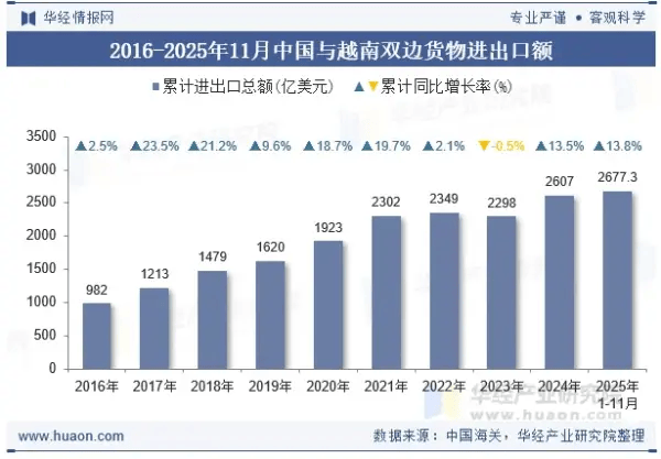 越中(zhong)双(shuang)边贸易额(e)保(bao)持着快速增(zeng)进,而且年年革新记录(lu)。2025年,按照越南(nan)的统计,双(shuang)边贸易额(e)达到2560亿美元,按我国海关的统计达到2961亿美元,接近3000亿美元,这个数字也是非常大,占越南(nan)贸易总额(e)的将(jiang)近1/3。若是按照国度来算,越南(nan)是我国第四大贸易伙伴,仅次于美国、韩国、日(ri)本——其实,与日(ri)本的差(cha)异(yi)并不算大。