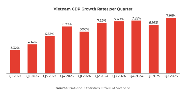 越南(nan)2023年一季度至2025年二季度GDP增(zeng)进率变化情况数据来源(yuan):越南(nan)国度统计局