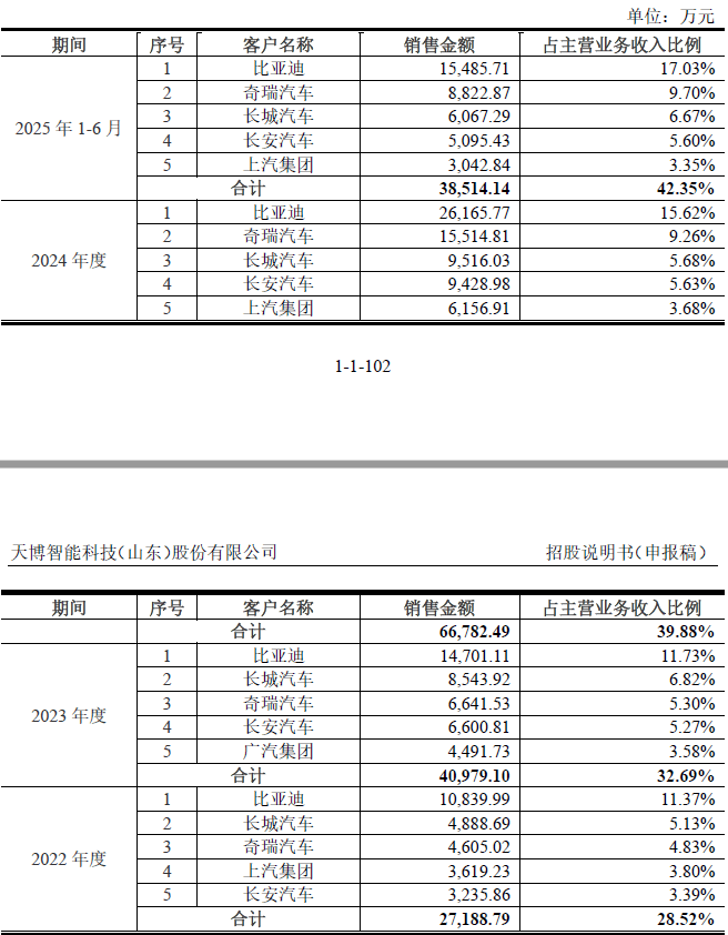 尽管天博智能称(cheng)已覆盖2024年国内汽(qi)车销量前十(shi)车企,但过度依赖头部客户,意味着业绩受下游车企经营状况、订单变化(hua)影响(xiang)较大,若核心客户流(liu)失(shi)或减少订单,将对业绩造成重大冲击。