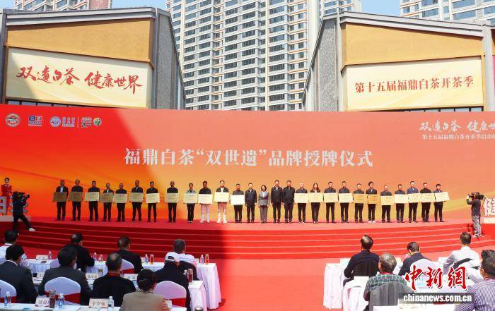 福鼎白茶“双(shuang)世遗”品牌(pai)授(shou)牌(pai)仪式。中新网记者 叶茂 摄