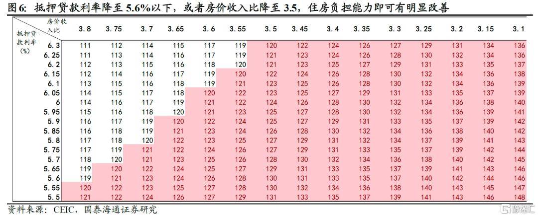 住(zhu)房负担能力已清(qing)晰地展现出(chu)改(gai)进远(yuan)景:其(qi)一,当前的住(zhu)房负担能力并没有“迥殊(shu)糟糕”,只需典质贷款利率降至5.6%以下(xia)(当前6.1%),大概房价支出(chu)比(bi)降至3.5(当前3.8),负担能力即能有明显改(gai)进(回到金融(rong)危机前的均匀水平120)。