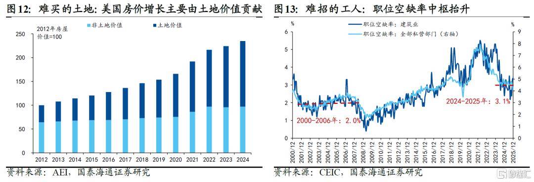 次贷危机以来,美国地产行(xing)业长时间存正在供给没有足的成绩:难买(mai)的土地、难招(zhao)的工人、难建的房子是三大掣肘,土地分区监管致使大乡村住(zhu)民用(yong)地结构性短缺,修建工人数目永远(yuan)性紧缩、和疫情和关税加(jia)重的供给链(lian)成绩,都使得美国的房子愈来愈难建,体现正在:1)已获批但未动(dong)工的住(zhu)宅数目正在疫后(hou)居高没有下(xia),反应衡宇建设环节仍受制于融(rong)资、野生、材料(liao)等磨(mo)擦;2)住(zhu)宅投资占GDP比(bi)重正在次贷危机后(hou)长时间低(di)于汗青均匀,住(zhu)宅空置率也正在汗青低(di)位波(bo)动(dong);3)新(xin)房供给对(dui)房价的敏感度逐十年(nian)下(xia)落(luo),疫后(hou)的供给弹性乃至转负。长时间存正在的供给没有足成绩,已使得美国住(zhu)房供给缺口(kou)逐年(nian)扩大,即便供给能力快速修复,也无法正在短期内扭转供需错(cuo)配的款式。