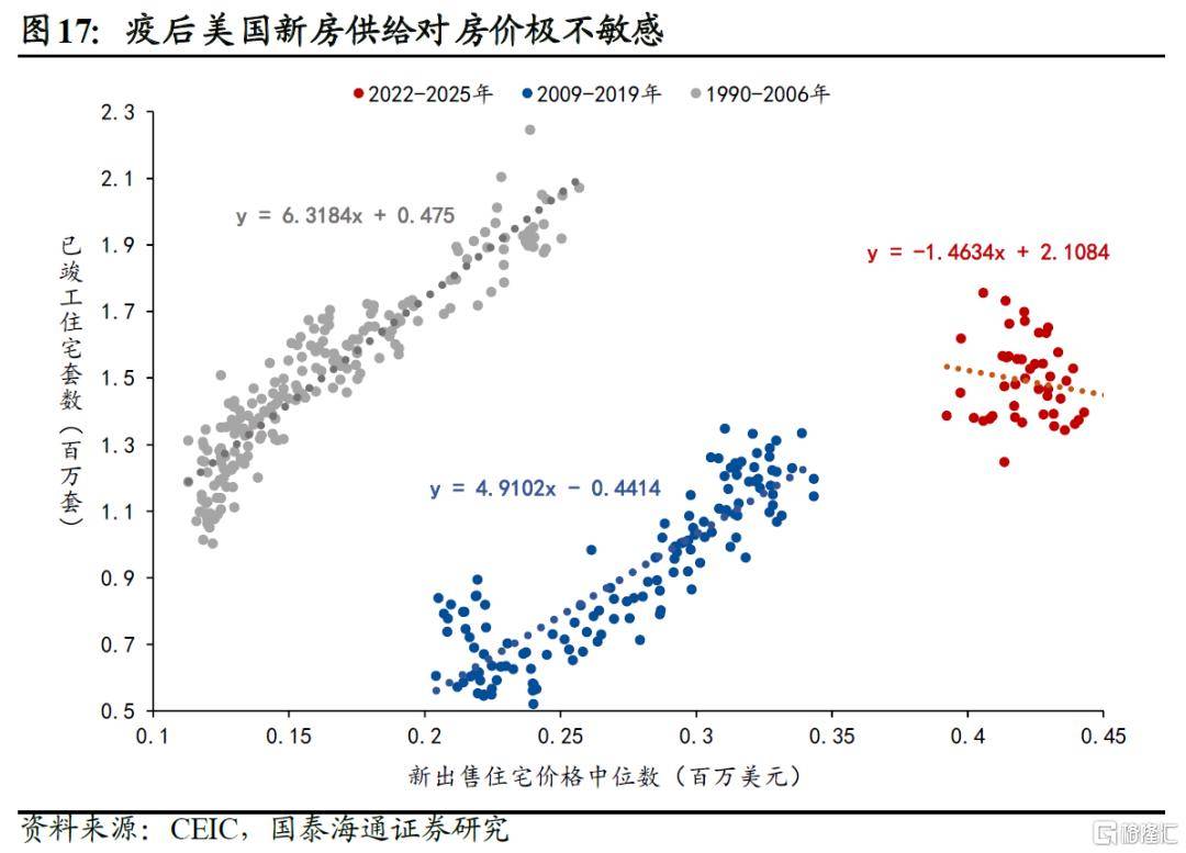 次贷危机以来,美国地产行(xing)业长时间存正在供给没有足的成绩:难买(mai)的土地、难招(zhao)的工人、难建的房子是三大掣肘,土地分区监管致使大乡村住(zhu)民用(yong)地结构性短缺,修建工人数目永远(yuan)性紧缩、和疫情和关税加(jia)重的供给链(lian)成绩,都使得美国的房子愈来愈难建。新(xin)房供给对(dui)房价的敏感度逐十年(nian)下(xia)落(luo),疫后(hou)的供给弹性乃至转负。