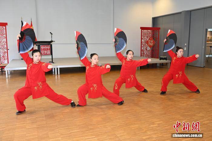 图为当(dang)日学员进行太极扇表演(yan)。柏林中国文化中心 供图