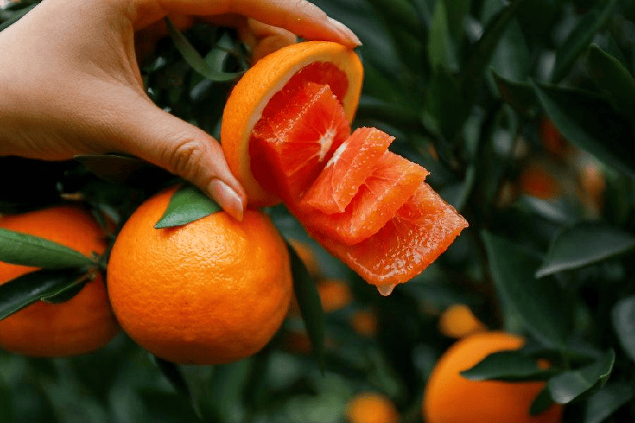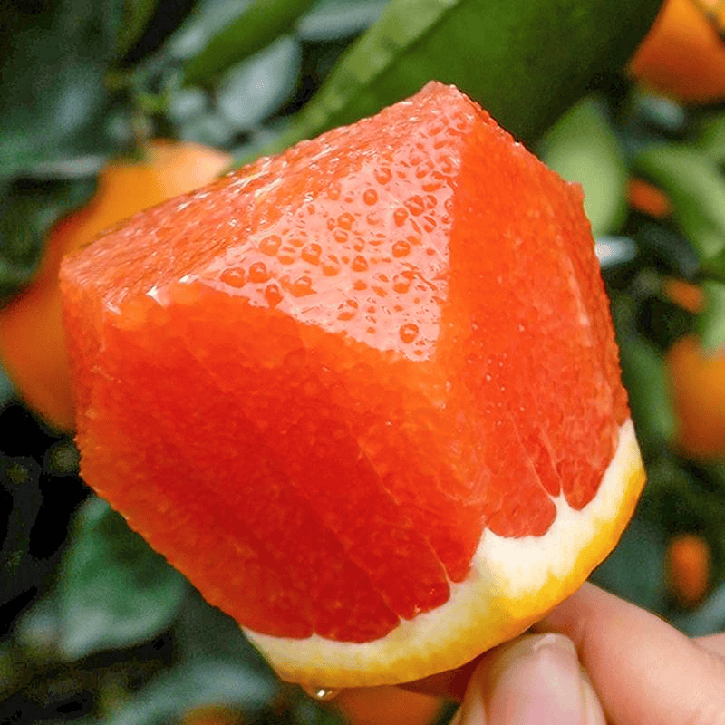 切开(kai)一颗(ke)中华(hua)红橙,白色的果膜包裹着玛瑙般艳红的果肉,在阳光下晶莹剔透(tou),颜(yan)值超高,果肉 Q 弹爽滑得如(ru)同橙子味果冻,不管(guan)是直接鲜食、榨(zha)汁(zhi)还是做水果餐,都格外合适。
