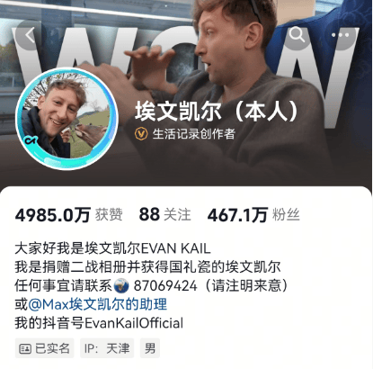 美国小伙埃文·凯尔3月15日在社交(jiao)媒体发视(shi)频,宣布定居中国。IP定位为(wei)天津。